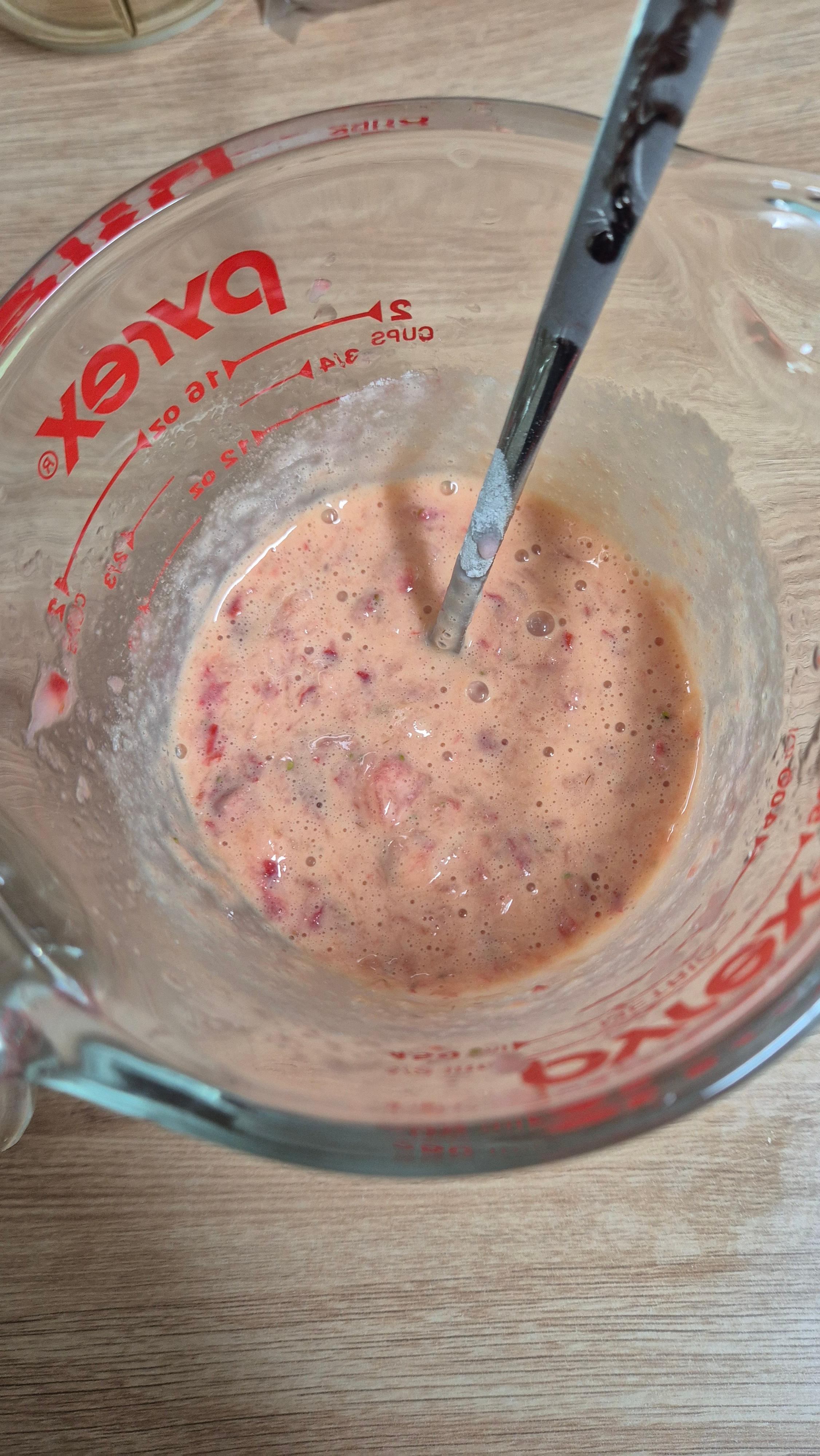 이제 중요한 단계! 반죽을 전자렌지용 그릇에 담고, 랩이나 뚜껑을 덮은 후, 1분 30초에서 2분 정도 돌려주세요. 전자렌지 출력에 따라 시간이 조금 달라질 수 있으니까, 1분 30초 후에 꺼내서 한번 확인해보세요. 그때부터 빵처럼 부풀어 오르면 완성! 🍞 (이건 정말 마법처럼 부풀어 올라요!) - 완성!